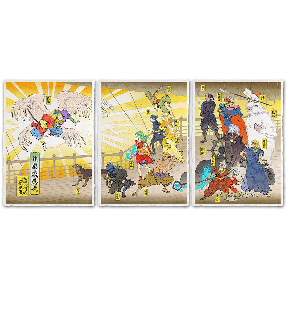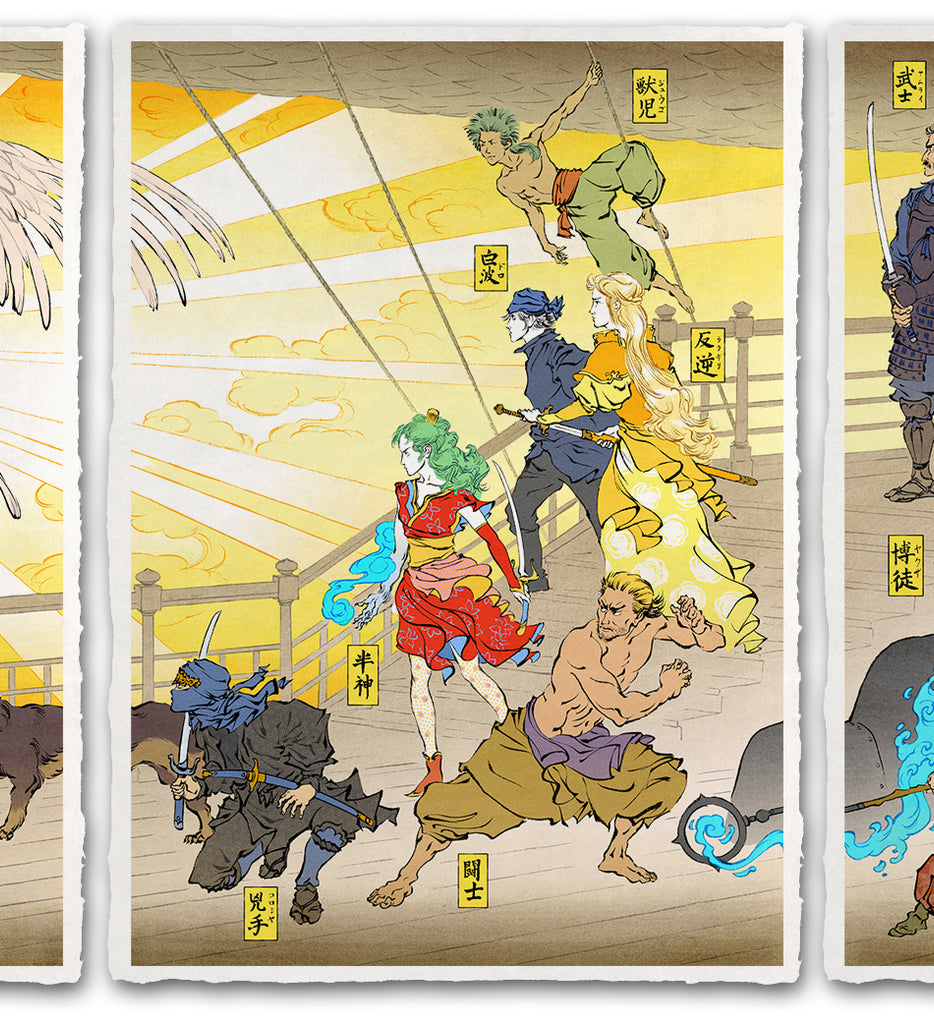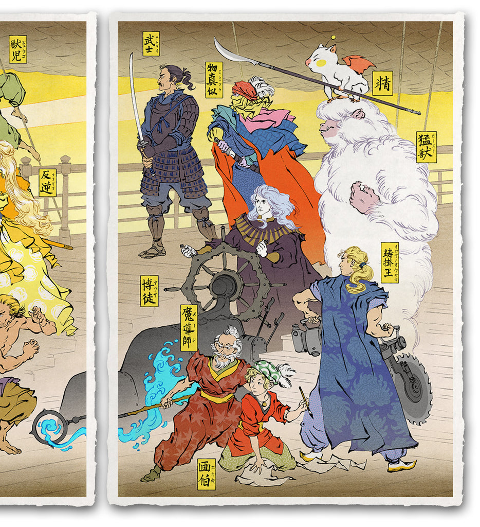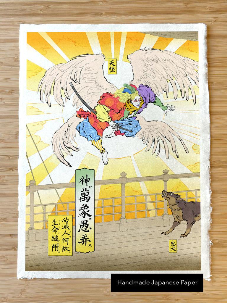 1) Handmade Japanese Paper: Created by the Kikuchi Studio in Ehime Japan, this paper features a lovely mulberry texture and rough deckled edges. The overall effect makes our giclée prints look like real historical Japanese prints. I'm very proud of these!