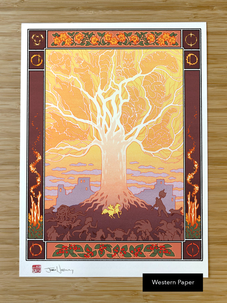 1) Handmade Japanese Paper: Created by the Kikuchi Studio in Ehime Japan, this paper features a lovely mulberry texture and rough deckled edges. The overall effect makes our giclée prints look like real historical Japanese prints. I'm very proud of these!