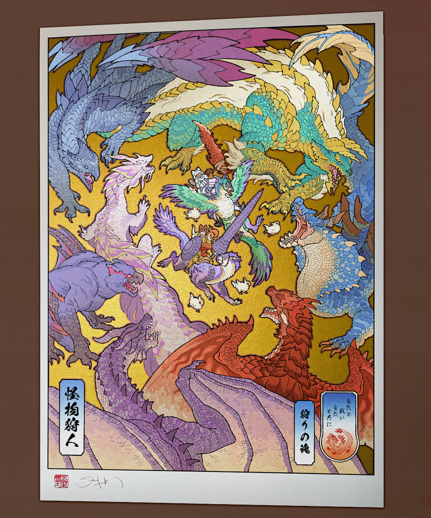 The middle caption says 狩りの魂, which means 'The Soul of the Hunt'.