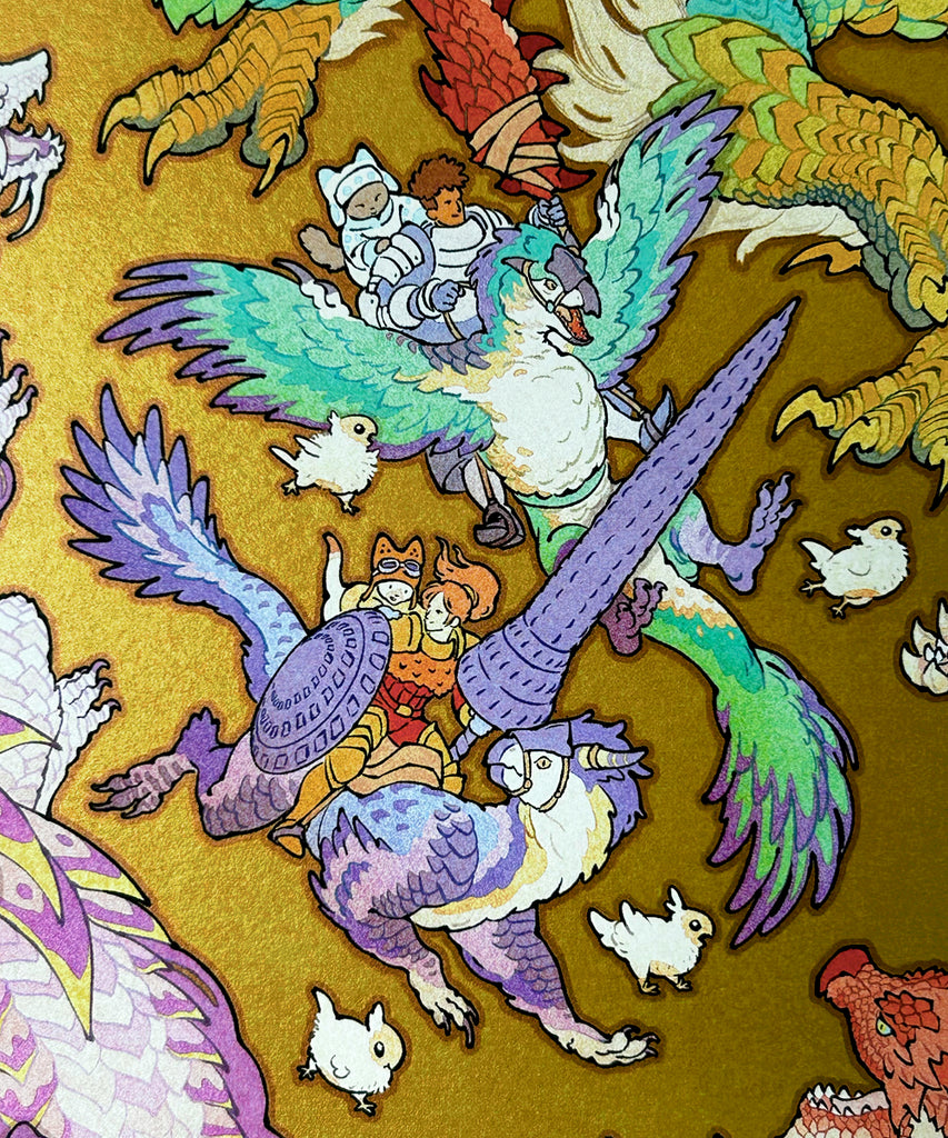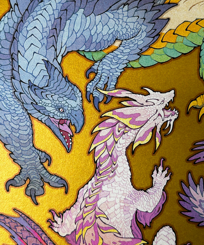 I wanted to create that glowing, floating effect in this piece, so I found a printer who can do gold ink effects. The results are very impressive! I'm so proud of how this piece came out, and I think you'll love it too.