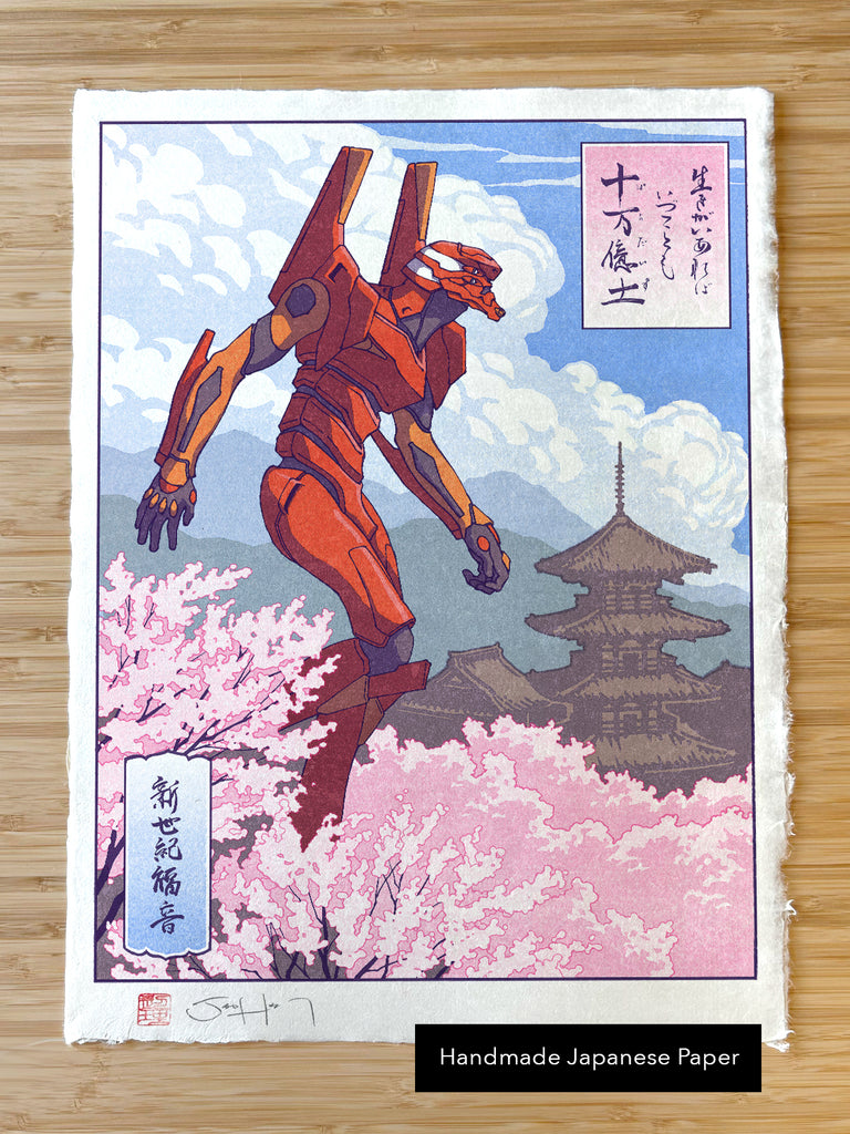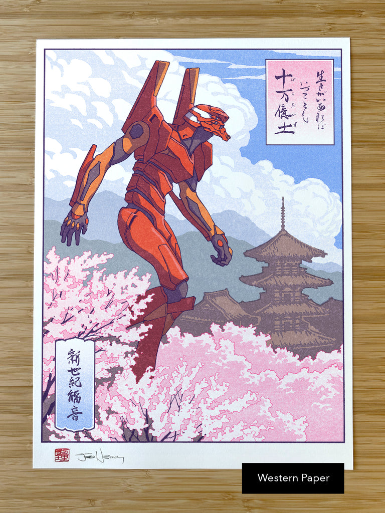 1) Handmade Japanese Paper: Created by the Kikuchi Studio in Ehime Japan, this paper features a lovely mulberry texture and rough deckled edges. The overall effect makes our giclée prints look like real historical Japanese prints. I'm very proud of these!