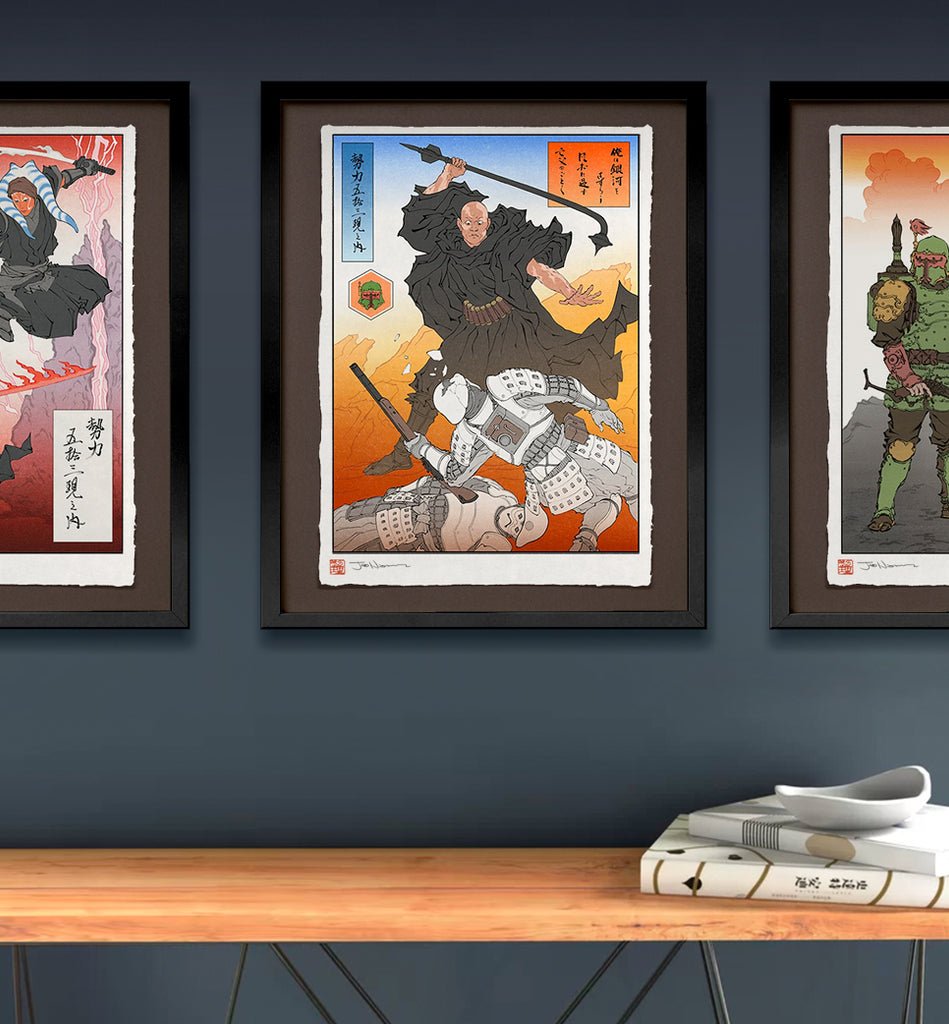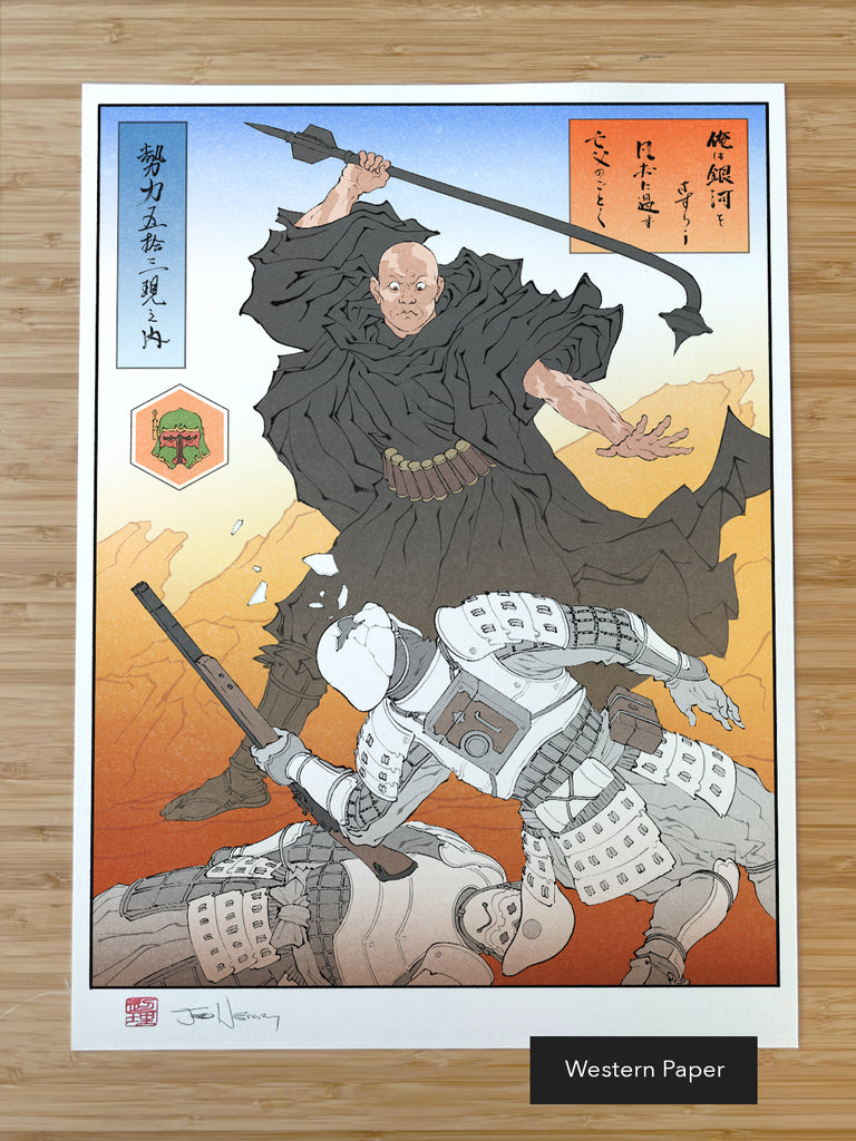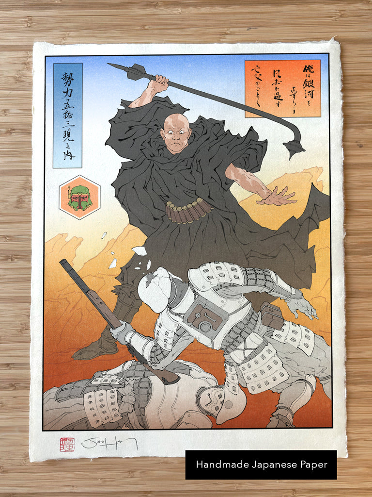 1) Handmade Japanese Paper: Created by the Kikuchi Studio in Ehime Japan, this paper features a lovely mulberry texture and rough deckled edges. The overall effect makes our giclée prints look like real historical Japanese prints. I'm very proud of these!