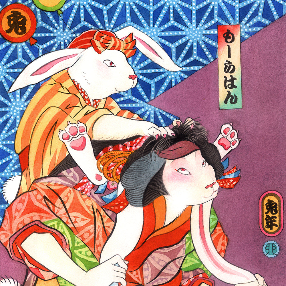 For years I have admired Moira Hahn's bright watercolor paintings. Moira is one of my biggest art heroes, and was a major source of inspiration as I began working in an Ukiyo-e style.