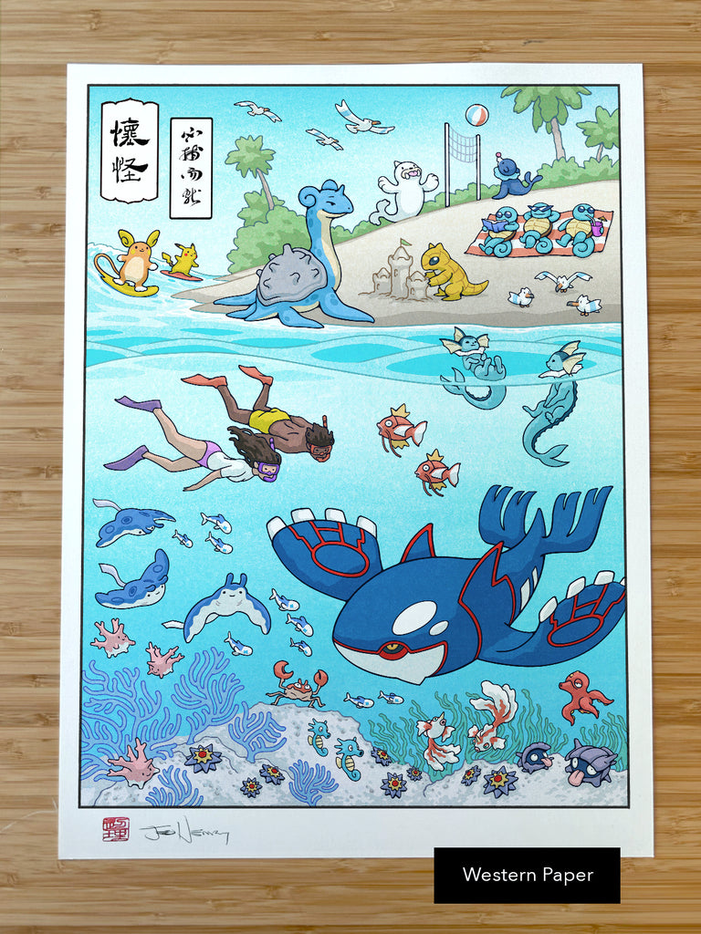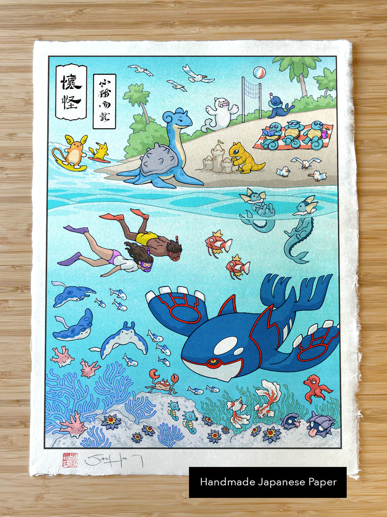 1) Handmade Japanese Paper: Created by the Kikuchi Studio in Ehime Japan, this paper features a lovely mulberry texture and rough deckled edges. The overall effect makes our giclée prints look like real historical Japanese prints. I'm very proud of these!
