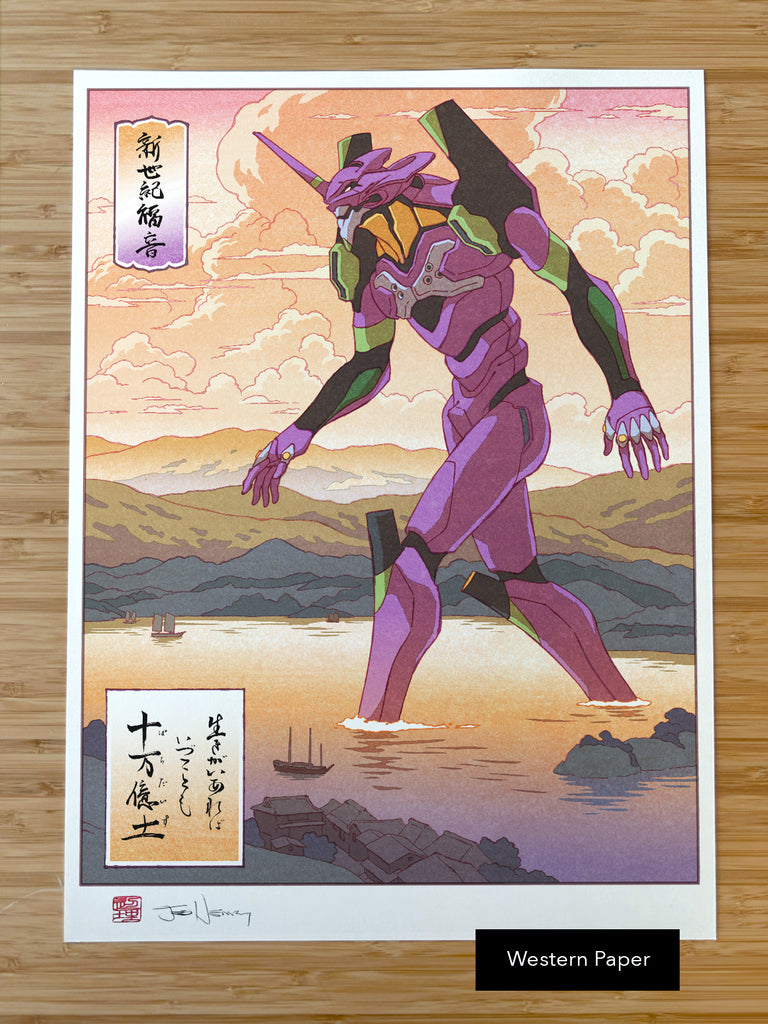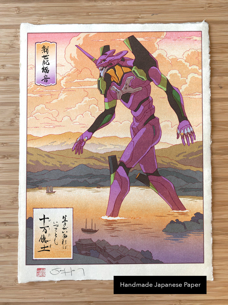 1) Handmade Japanese Paper: Created by the Kikuchi Studio in Ehime Japan, this paper features a lovely mulberry texture and rough deckled edges. The overall effect makes our giclée prints look like real historical Japanese prints. I'm very proud of these!