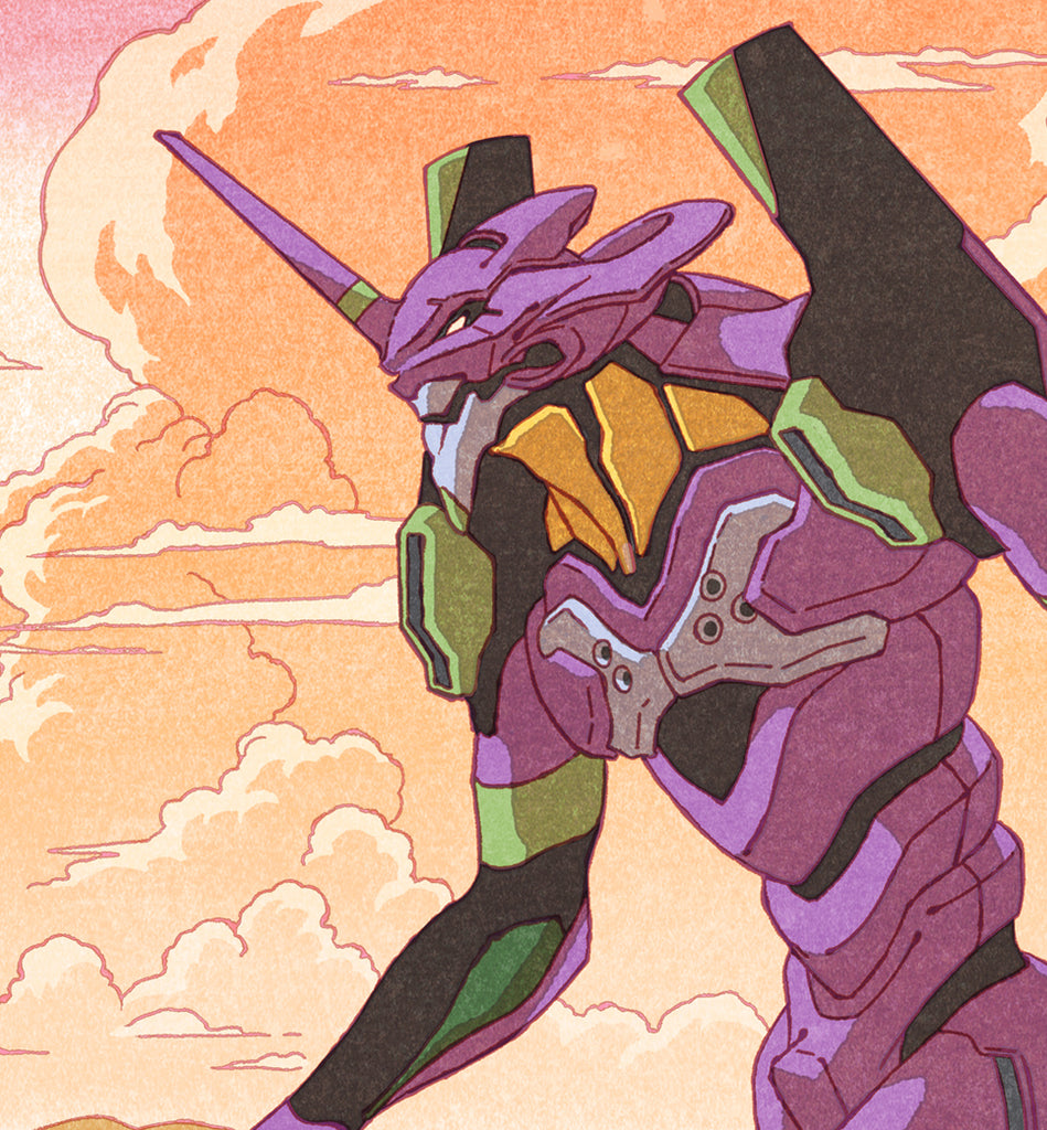 Because of this, I did not adapt the design of the robot's armor. Instead I wanted to focus on the anachronism between a futuristic mobile suit walking though a 19th century pastoral scene. The contrast is quite stunning I think!