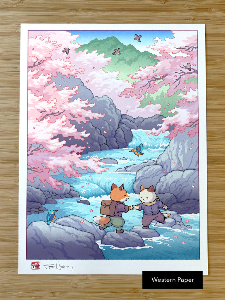1) Handmade Japanese Paper: Created by the Kikuchi Studio in Ehime Japan, this paper features a lovely mulberry texture and rough deckled edges. The overall effect makes our giclée prints look like real historical Japanese prints. I'm very proud of these!