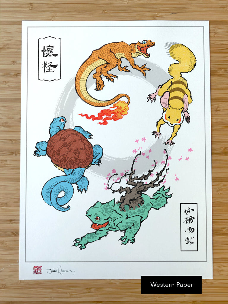 1) Handmade Japanese Paper: Created by the Kikuchi Studio in Ehime Japan, this paper features a lovely mulberry texture and rough deckled edges. The overall effect makes our giclée prints look like real historical Japanese prints. I'm very proud of these!