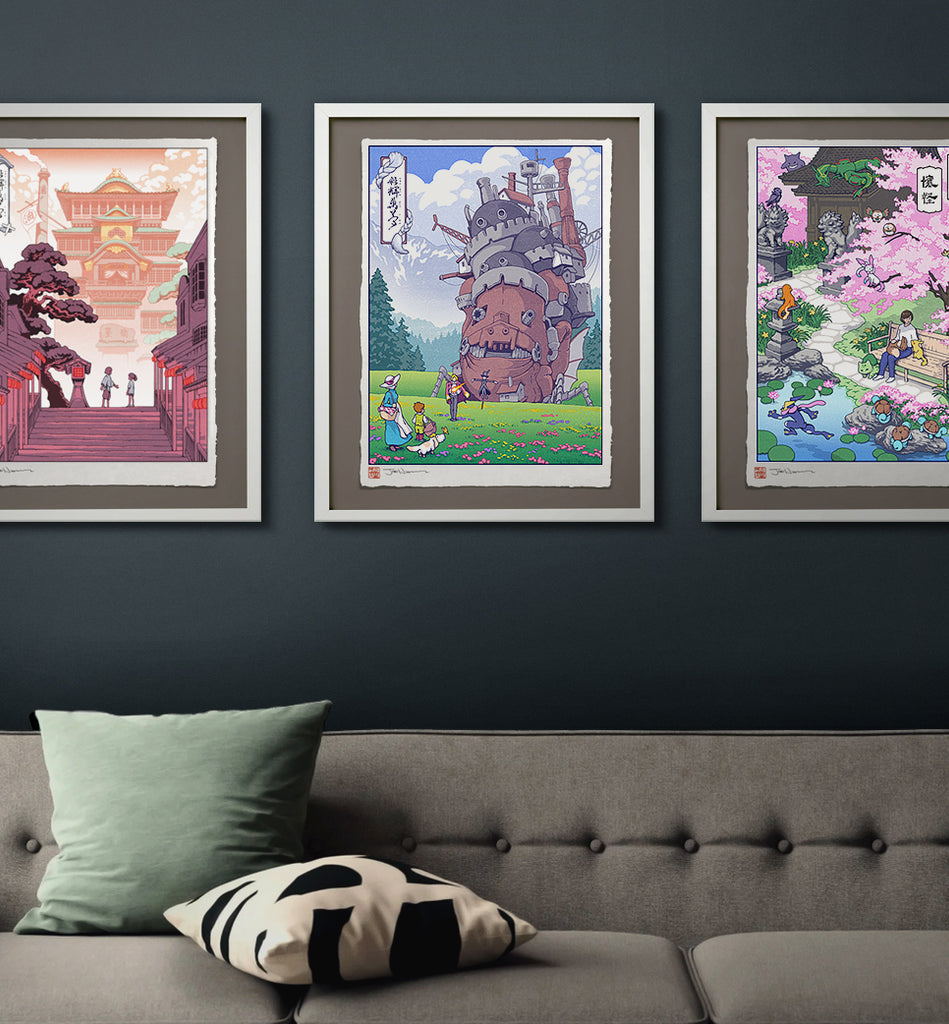 I love the background paintings in this film - I could stare at them for days! And even though it's not a perfect fit, I wanted to approach this magical world with my own traditional block print aesthetic. To capture as much detail as possible, I decided to work in the modern Shin-hanga style, which is known for its realism and complex color schemes. I think the final design came out pretty well!