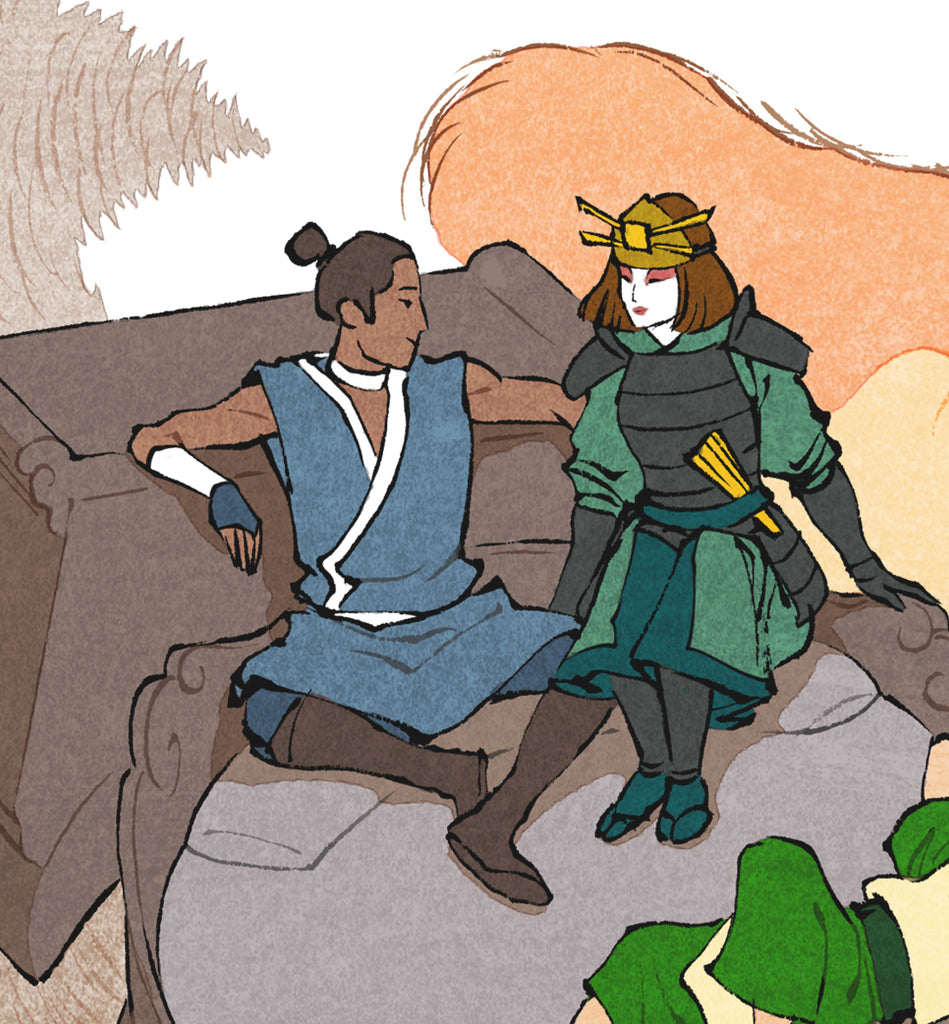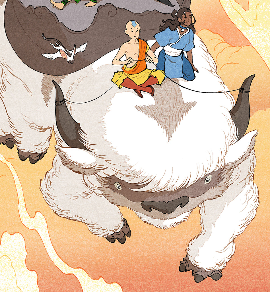 The left cartouche features the kanji 末撓気師, literally meaning "the last bending air master".