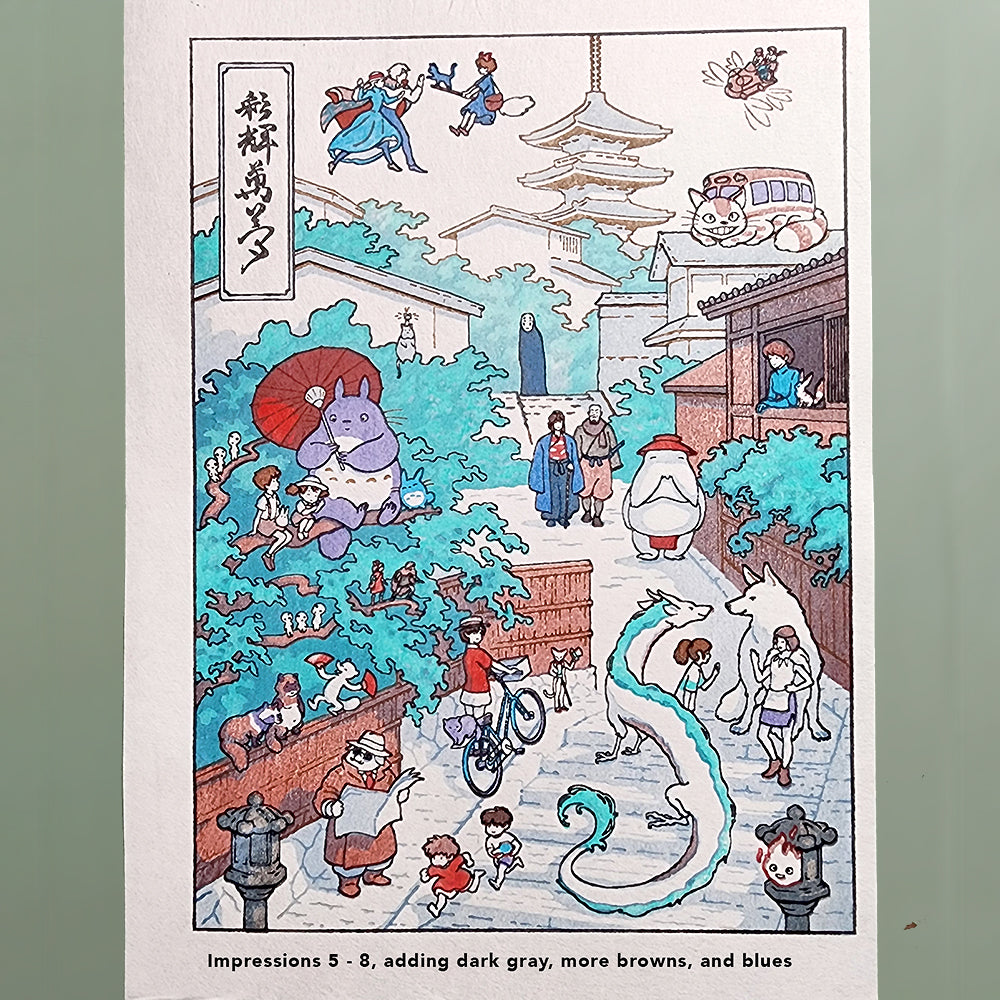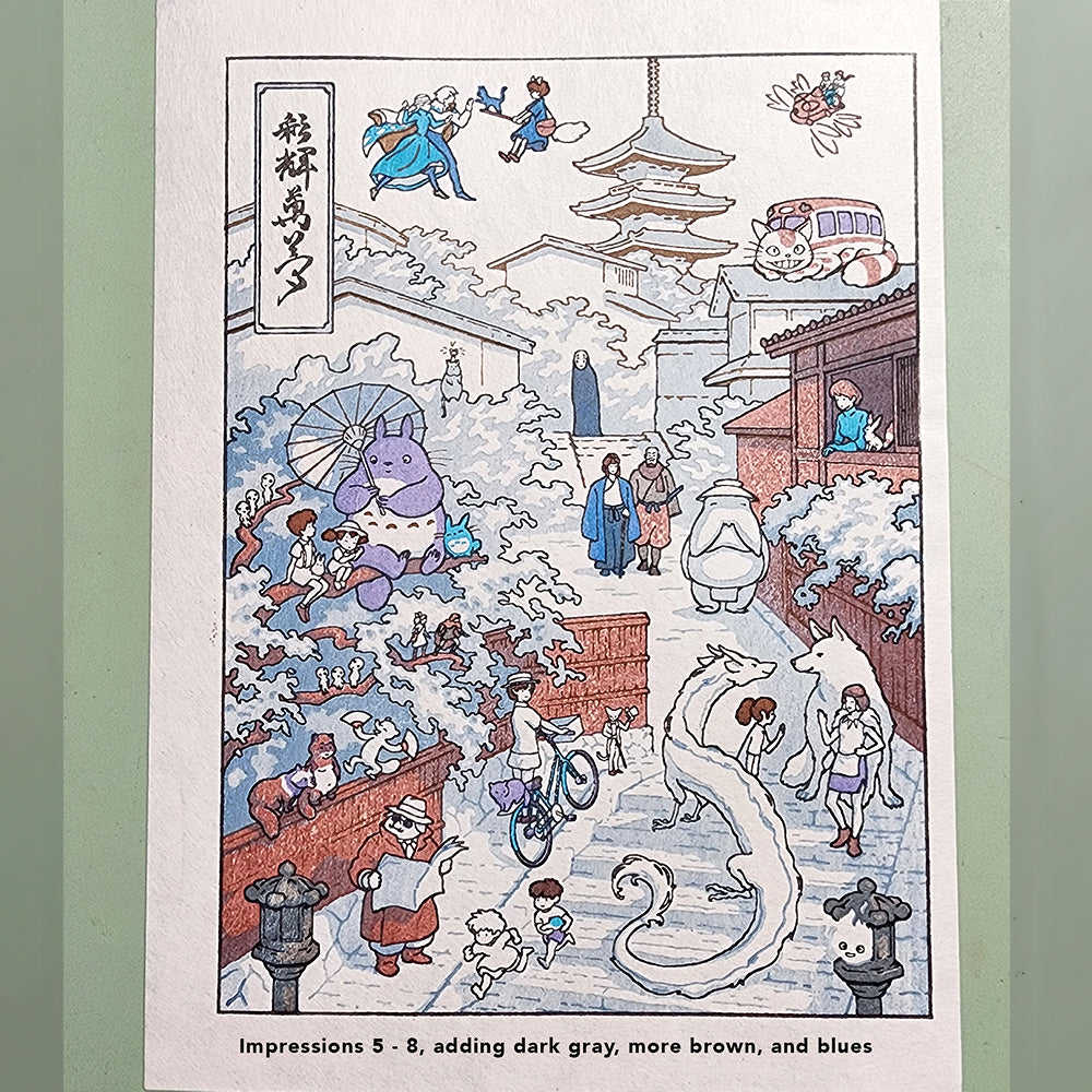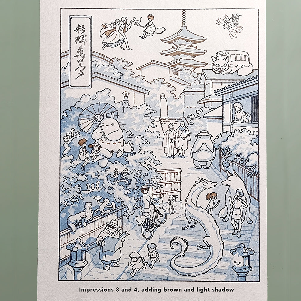 We teamed up again with apprentice printmaker Calvin Carlisle to produce this handmade print. Calvin is still at an early stage in his training, so his work isn't at the level of Dave and his Tokyo team.